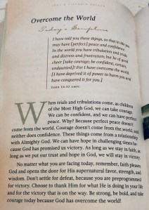 When I had trials and tribulations a few years ago, I turned to page 158 in Wake Up to Hope Devotional by Joel and Victoria Osteen, and read it out loud before I started my day. It gave me comfort and the courage to face life’s challenges. Reading this every morning put my mind at ease and set my thoughts in the right direction.